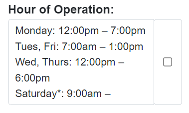 You'll notice several types of data entry fields used in Location Manager to allow consise presentation of different types of information. Here is some explanation on each type and what's expected when you're entering your information.